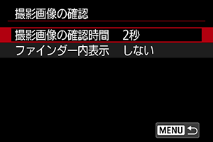 - [ファインダー内表示]の設定は、[撮影画像の確認]が[切]以外のときに機能します。