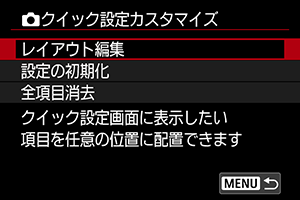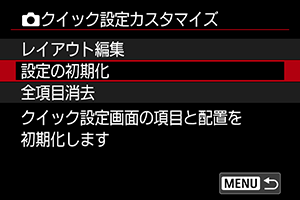 - [設定の初期化]を選ぶと、クイック設定画面の項目と配置が初期状態に戻ります。