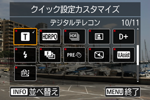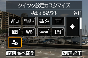 - クイック設定に表示されている項目にはチェックが付いています。チェックが付いていない項目が削除対象です。