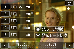 - 発光グループごとの設定(発光モード、調光補正量)が表示されます。