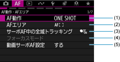 メニュー目次:AFタブ(静止画撮影)