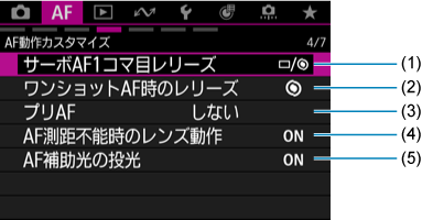 - (2)ワンショットAF時のレリーズ
