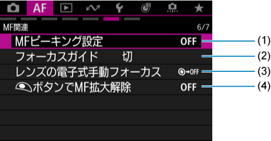 - フォーカスモードスイッチがないレンズを使用したときに[フォーカスモード]が表示されます。