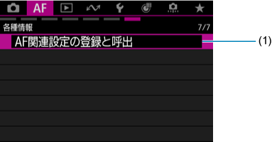 - (1)AF関連設定の登録と呼出