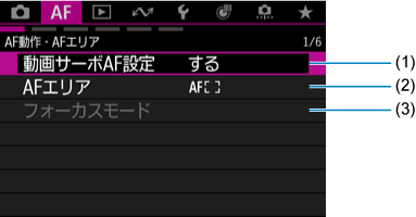 メニュー目次:AFタブ(動画撮影)