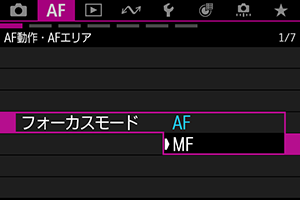:フォーカスモード]を[MF]に設定します。