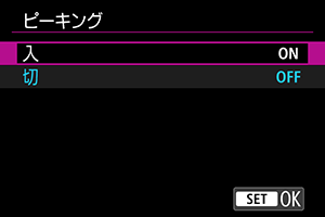 ]以外を設定しているときは、カメラの画面にはピーキングが表示されます。