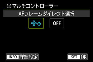 :撮影時ボタン カスタマイズ]で[AFフレームダイレクト選択]を選ぶ