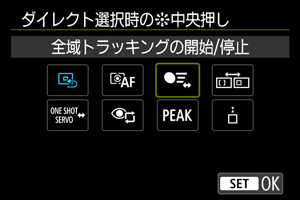 中央押し]で[全域トラッキングの開始/停止]を選ぶ