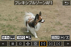 ボタンを何度か押してフレキシブルゾーンAF1、フレキシブルゾーンAF2、またはフレキシブルゾーンAF3のいずれかを選び、