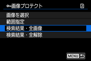 - [検索結果・全解除]を選ぶと、絞り込まれた画像のプロテクトがすべて解除されます。