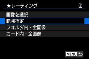 :レーティング]の[範囲指定]を選びます。