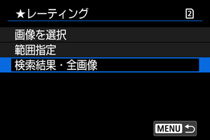 - [検索結果・全画像]を選ぶと、検索条件で絞り込まれたすべての画像が、指定した内容でレーティングされます。