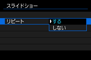 - 静止画の[再生間隔]と[リピート](繰り返し再生)を設定します。