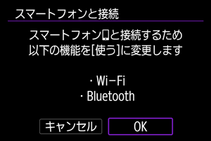 - すでに[Wi-Fi設定]および[Bluetooth設定]が[使う]になっているときは、この画面は表示されません。