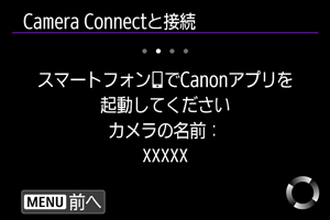 - Camera Connectのインストールが済んでいないときは、画面のQRコードをスマートフォンで読み取り、Google PlayまたはApp StoreにアクセスしてCamera Connectをインストールしてから、
