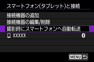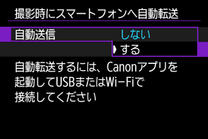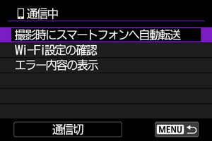 撮影しながらスマートフォンに画像を自動送信することができます。カメラとスマートフォンのWi-Fi接続を終了してから行います。