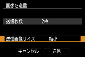 - 複数画像を送信するときは、送信前の確認画面でも[送信画像サイズ]を変更できます。