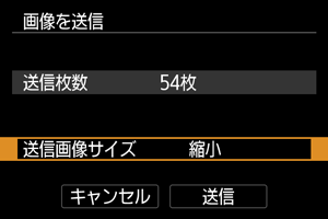 - 画像の送信中に[キャンセル]を選ぶと、送信をキャンセルすることができます。