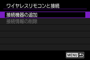 - 「****(ワイヤレスリモートコントローラーの個別名称)と接続しました」が表示されたら、