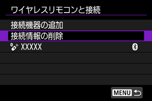 接続情報を削除することができます。Bluetooth接続中のワイヤレスリモートコントローラーはペアリングが解除されます。