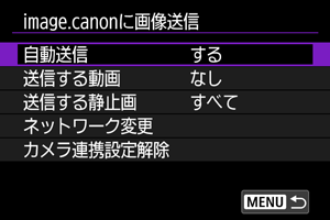 - [電源ON時]は、カメラの電源を入れたとき、自動送信を開始します。