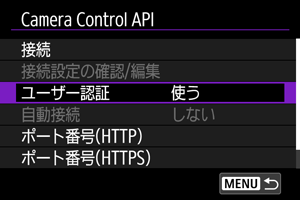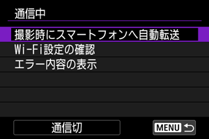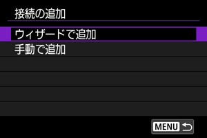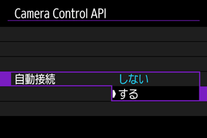 [する]を選んで、カメラの電源を切ると、次にカメラの電源を入れたときから、自動的に接続されます。