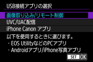 USB接続アプリの選択