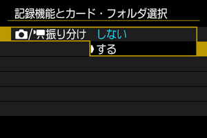 [する]に設定すると、静止画と動画の記録方法が自動設定されます。動画はカード、静止画はカード