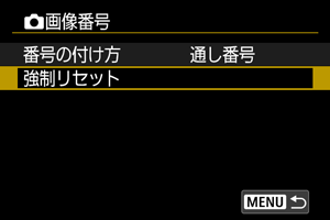 任意に画像番号を0001にしたり、新しいフォルダで画像番号0001から撮影したいとき