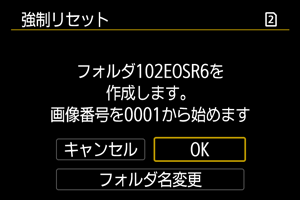 - [OK]を選ぶと、新しいフォルダが作成され、画像番号が0001から始まります。
