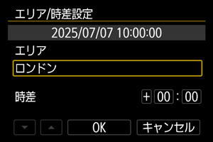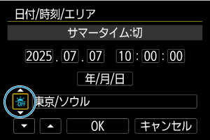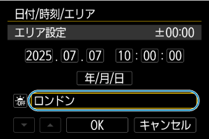 - カメラからバッテリーを取り出して保管したときや、カメラのバッテリー残量がなくなったとき、カメラを氷点下に長時間放置したときは、日付/時刻/エリアの設定が解除されることがあります。そのときは再度設定してください。
