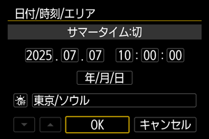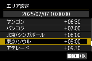 エリアから設定しておくと、エリア設定を変更するだけで、そのエリアの日付/時刻に変更されます。