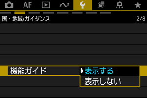 撮影モード設定時、クイック設定時に、機能・項目の簡単な説明(機能ガイド)を表示することができます。