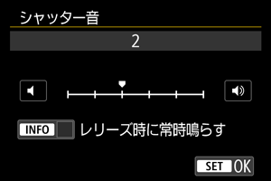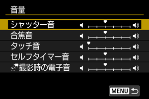 ]の設定にかかわらず、シャッター作動時に電子音が鳴ります。