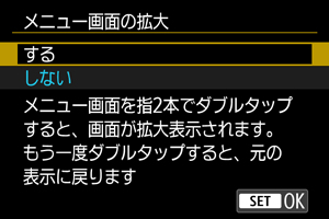 [:メニュー画面の拡大]を選ぶ()