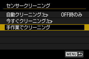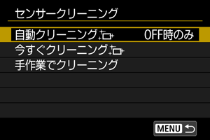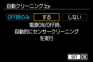- [OFF時のみ]または[する]のときは、モニターの表示が消えるとき(モニターオフ時)も、センサークリーニングが実行されます。