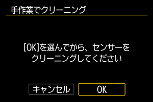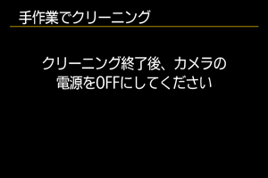 - 撮像素子の清掃中にバッテリーの残量が少なくなると、警告のため電子音が鳴ります。作業を中止し、清掃を終了してください。