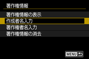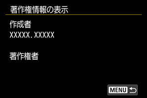 - 入力した作成者名または著作権者名が長いときは、[著作権情報の表示]を選んだ際に、入力した文字の一部が表示されないことがあります。