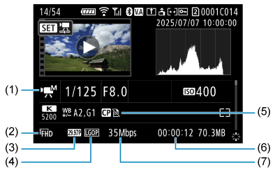 - 記載のない項目は静止画の簡易情報表示と共通のため、説明を省いています。
