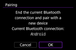 Бастапқыда біреуімен жұптағаннан кейін басқа смартфонмен жұптау үшін жоғарыда көрсетілген экранда [OK] параметрін таңдаңыз.