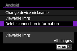 - Камераны екі немесе үш құрылғыға Bluetooth арқылы бір уақытта қосу мүмкін емес. Bluetooth қосылымы үшін басқа смартфонға ауысу үшін Қосылым параметрлерін өзгерту немесе жою бөлімін қараңыз.