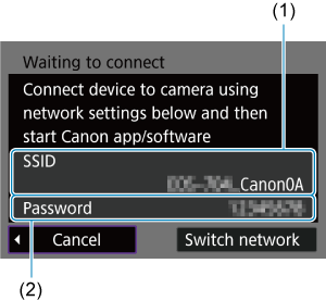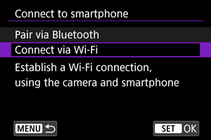 - Wi-Fi арқылы қайта қосылу үшін Camera Connect қолданбасын іске қосыңыз және пайдаланатын функцияңызды түртіңіз.