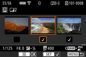 [Set image search conditions/Суретті іздеу шарттарын орнату] терезесінде орнатылған іздеу шарттарына сәйкес келетін барлық суреттерді бірден жіберіңіз. [Set image search conditions/Суретті іздеу шарттарын орнату] параметрі туралы мәліметтерді Суретті іздеу шарттарын орнату бөлімінен қараңыз.