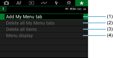 Delete all My Menu tabs (Барлық My Menu (Менің мәзірім) қойындыларын жою)