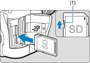 - Жазуды және өшіруді іске қосу үшін картаның жазудан қорғау қосқышының (1) жоғарыға қарай орнатылғанын тексерiңіз.