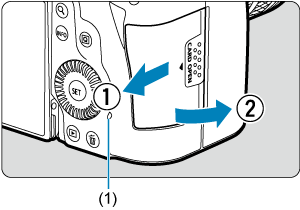 - Қатынасу шамының (1) өшірілгенін тексеріңіз, одан кейін қақпақты ашыңыз.