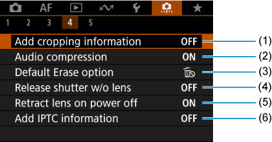 - (5) Retract lens on power off (Қуат өшіруде объективті шығарып алу)
