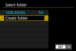 - Экранда ашылған карта көмегімен атауы «DCIM» болатын жаңа қалта жасаңыз. DCIM қалтасын ашып, суреттерді ұйымдастыру және сақтау үшін қажет барынша көп қалталар жасаңыз. «100ABC_D» қалта атаулары үшін талап етілген пішім болып табылады және бірінші үш сан 100–999 ауқымындағы қалта нөмірі болуы тиіс. Соңғы бес таңба A-Z аралығындағы кез келген үлкен және кіші әріптер, сандар, «_» астыңғы сызық тіркесімі болуы мүмкін. Бос орынды пайдалану мүмкін емес. Қалталар аты бірдей үш цифрлы қалта нөмірін, қалған бес таңба әр түрлі болғанның өзінде, бөлісе алмайтындығын ескеріңіз (мысалы, «100ABC_D» және «100W_XYZ»).