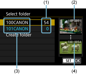 - Қалта 9999 суретке дейін қамти алады (файл нөмірі 0001–9999). Қалта толған кезде қалта нөмірі бірге арттырылған жаңа қалта автоматты түрде жасалады. Сондай-ақ, егер қолмен ысыру () орындалса, жаңа қалта автоматты түрде жасалады. 100-999 аралығында нөмірленген қалталар жасалады.